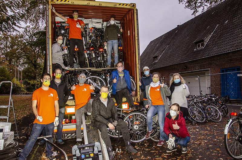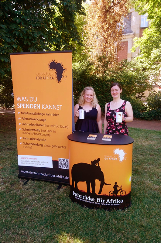 Auch unserem Ruf als Fahrradstadt wollten wir gerecht werden und haben deshalb zusammen mit dem Verein Fahrräder für Afrika e.V. aus Oschatz in Sachsen ausgediente Fahrräder, Werkzeug und Zubehör gesammelt. In hilfsbedürftigen Communities in Subsahara-Afrika werden Fahrradwerkstätten aufgebaut und Einheimische zu Mechanikern bzw. Mechanikerinnen ausgebildet. So wird Hilfe zur Selbsthilfe geleistet, da durch die neuen Transportmöglichkeiten neue Wirtschaftszweige aufgebaut werden können. 2020 haben wir sogar unseren ersten eigenen Container mit rund 400 Fahrrädern und Zubehör nach Durban in Südafrika verschickt. Aus organisatorischen Gründen mussten wir das Sammeln in Münster zum 28.02.2022 beenden.